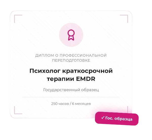 По окончании обучения вы получаете диплом установленного образца по специальности «Психолог краткосрочной терапии EMDR», который даёт право вести деятельность на территории РФ.